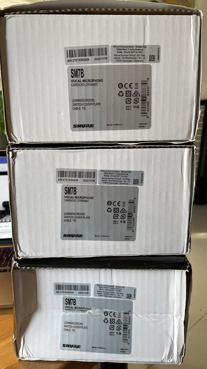 Begin september kocht ik drie 'SM7B'-microfoons bij je. Helaas is er een probleem: de drie microfoons blijken namaak te zijn. De klank is minder dan ik van de mics ken, dat viel me in eerste plaats op; de drie exemplaren hebben alle de kenmerken die Julian Krause in zijn YT-video aanwijst bij namaak SM7B's; en op de drie dozen staan drie exact dezelfde serienummers. Het is knappe namaak, maar het zijn geen Shure SM7B's, zoals je ze wel aan me hebt aangeboden.